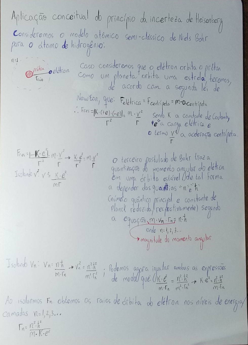 Photos 4, 5 and 6: application of the uncertainty principle in the Bohr atomic model Photos 7, 8, 9, 10 and 11: mathematical demonstration of the uncertainty principle